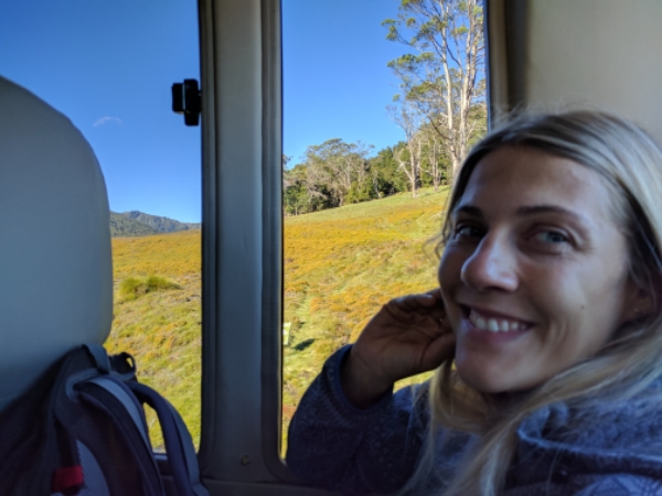 Heute mittag sind wir im Cradle Valley angekommen, haben uns erstmal auf dem Campingplatz ausgebreitet und sind dann nochmal in den Park zum Wandern. Dank eines Shuttlebusses können wir sogar bequem 200 Meter zum Parkeingang laufen und uns dann durch das Tal in den National Park bringen lassen.