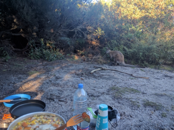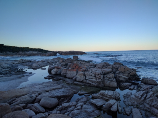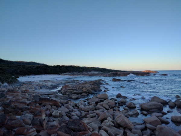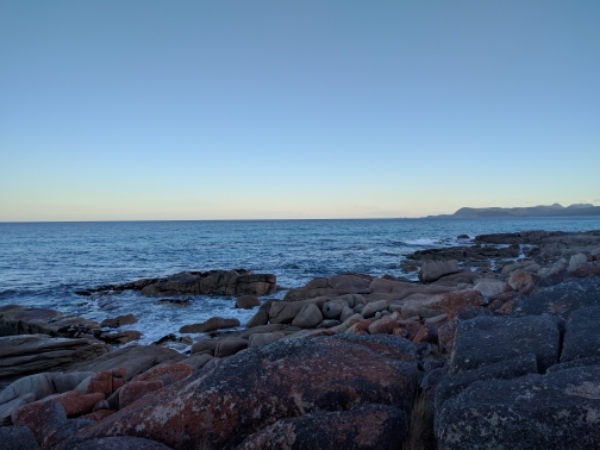 Hier in der Bay of Fires waren wir nachmittags noch eine Weile am Strand. Abends gab es lecker Süsskartoffel-Suppe.