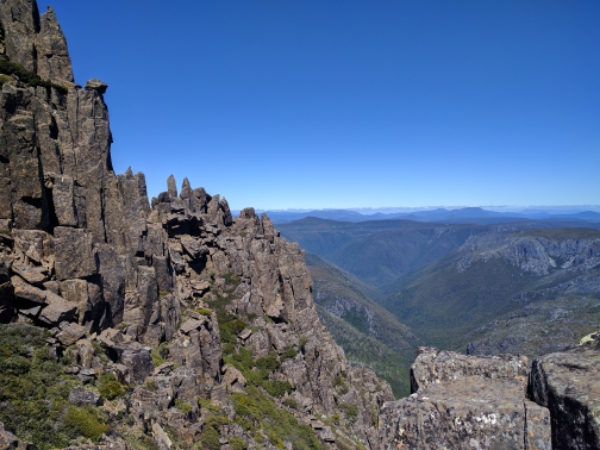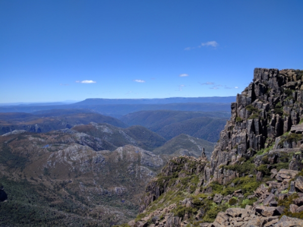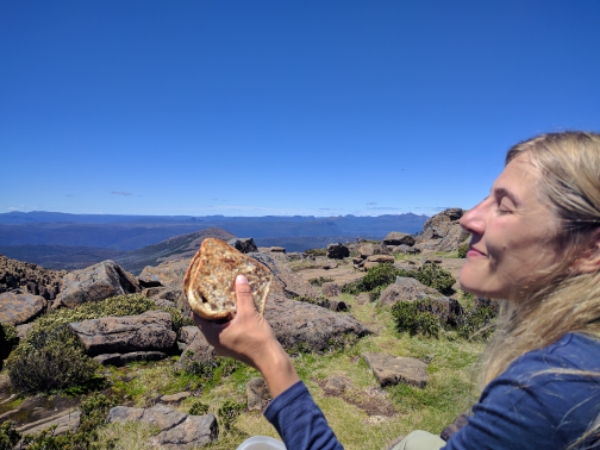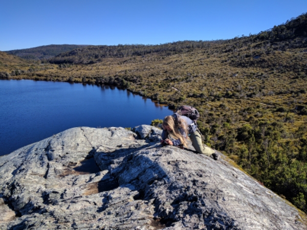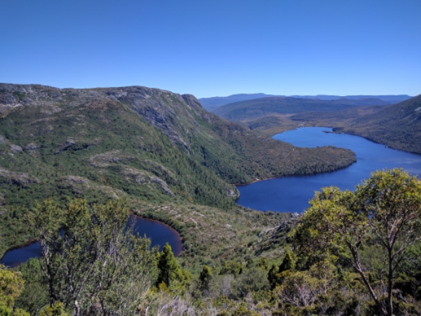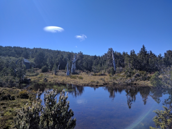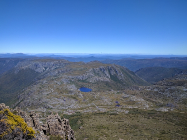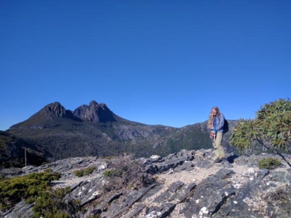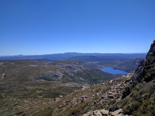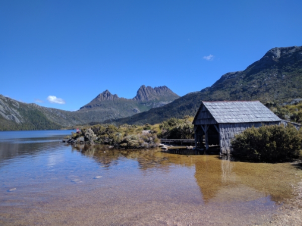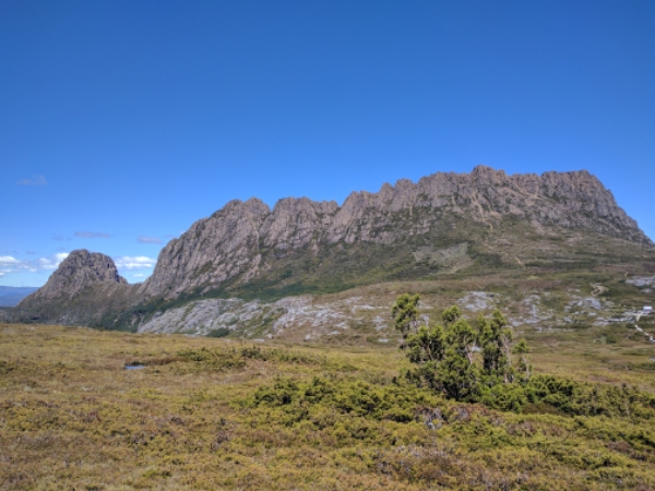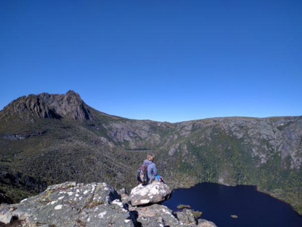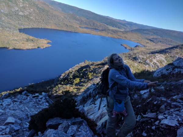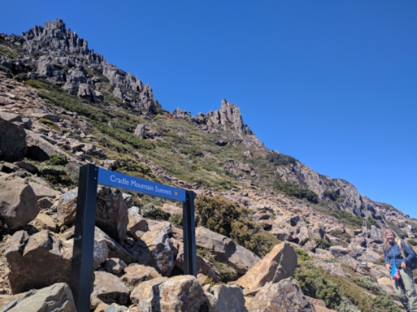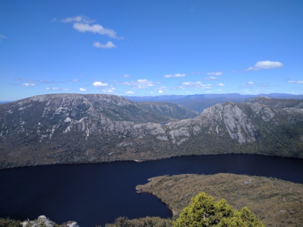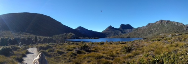 Heute sind wir vieeel gewandert. Eigentlich wollten wir um 7:30 aufstehen, aber da es um 6 schon hell war, wir wach und die Temperatur mit 5 Grad zu kalt zum Schlafen, haben wir einfach gemütlich gefrühstückt und waren dann pünktlich für den ersten Bus in den Park um 8:15 am Besucherzentrum und konnten um 8:45 direkt am Dove Lake auf 934 Metern Höhe loslaufen. Wir haben dann einmal den See im Uhrzeigersinn auf 1200 Meter Höhe umrundet und sind als Abstecher noch auf 1545 Meter auf den Gipfel von Cradle Mountain (über tolle Kletterfelsen) gekraxelt.