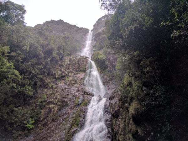 Heute haben wir Mal wieder etwas ausgeschlafen und ausgiebig gefrühstückt (mit selbst gemachten Korinthenbrötchen). Da uns der Standort am See gut gefallen hat und das es nicht mehr weit bis Cradle Mountain ist, haben wir das Zelt heute am See stehen gelassen. Wir sind nach Roseberrys gefahren und haben uns die Stadt angesehen (1032 Einwohner). Nachmittags sind wir in den Bergen oberhalb der Stadt zum Montezuma Wasserfall gewandert. Mit 103 Metern Fallhöhe soll dieser der höchste (bekannte) Wasserfall Tasmanien sein. Benannt ist er nach einer Bergbaufirma, die hier früher eine Mine betrieben hat. Über das Tal führt auch eine Hängebrücke, die konnten wir uns natürlich nicht entgehen lassen.