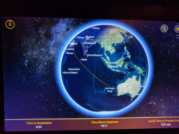 So, wir haben es nach 14:30 Stunden Flug erfolgreich bis nach Abu Dhabi geschafft und sitzen nun wieder wartend am Gate. Wir hatten auch angenehm viel Platz, da der 3. Platz in unserer Dreierreihe frei blieb und wir diesmal in einem neueren und größeren Flieger (A380-800) als auf dem Hinflug nach Perth sassen.