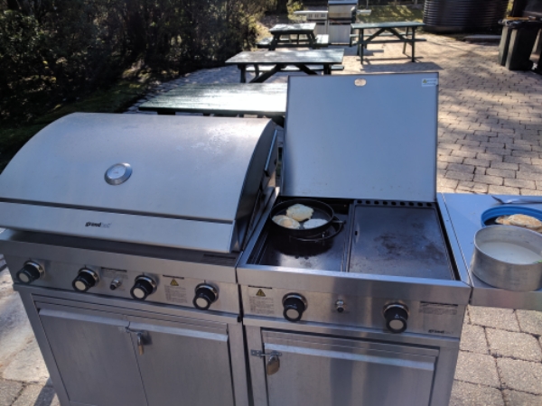 Danach ging es erstmal in die gemütliche Campküche ans Feuer. Dank Stromausfall im Landkreis haben wir dann auch wieder auf Gas gekocht, was aber gut passte da wir frühs noch Grillgut gekauft hatten.