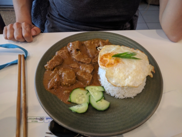 Da wir nicht wussten wie das Wetter wird und wir das Zelt nicht nass packen wollten haben wir uns für heute Nacht Mal ein Zimmer gegönnt. Nach dem Einchecken und Auto ausräumen haben wir erstmal geduscht und dann etwas die Stadt erkundet. Durch den Feiertag machte allerdings alles einen etwas ausgestorben Eindruck. Aber wir waren im Hafen und sind etwas durch die Gegend geschlendert. Als sehr spätes Mittagessen waren wir dann lecker Malaysisch essen.