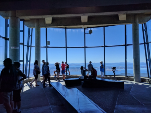 Heute ist unser letzter Tag in Australien. Nach dem Auschecken aus dem Hotel sind wir nochmal kurz auf den Hausberg von Hobart, Mt Wellington. Wir haben aber nur kurz die Aussicht genossen, es war dann doch sehr wusselig dort oben (Man kann einfach mit dem Auto hinfahren, der “Gipfel” ist von einer grossen Parkstrassenschleife umringt.).